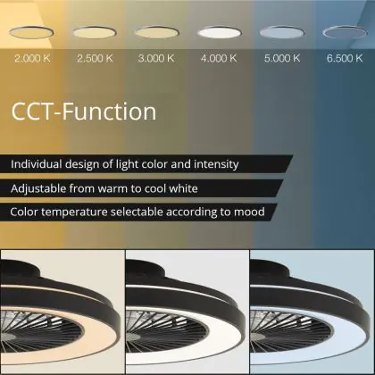 3. Afstembaar wit: Het witte licht kan alle waarden aannemen in de vermelde Kelvin-schaal, bijvoorbeeld 2200K tot 6500K.