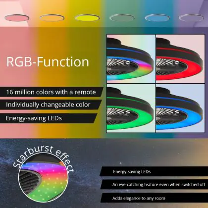 Beschrijving Brilliant Mazzaro Plafondventilator Kunststof Zwart 36W 4700lm - 830-865 CCT+RGB | 485mm - Afstandsbediening Dimbaar