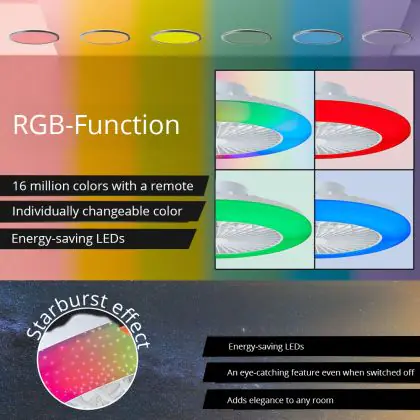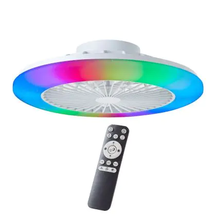 Beschrijving Brilliant Salerno Plafondventilator Kunststof Metaal Wit 36W 4700lm - 830-865 CCT+RGB | 485mm - Afstandsbediening Dimbaar