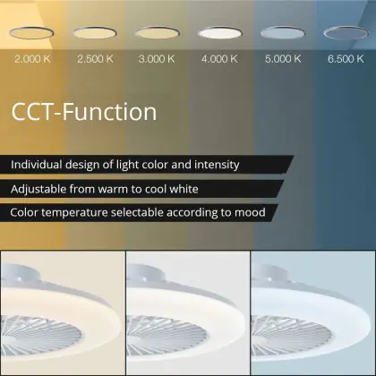 3. Afstembaar wit: Het witte licht kan alle waarden aannemen in de vermelde Kelvin-schaal, bijvoorbeeld 2200K tot 6500K.