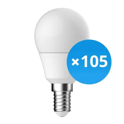 | Fabrikantnaam | Bulk 105x LED Lamp E14 Kogel 2.9W, 250lm, 2700K | Vervangt 25W | |