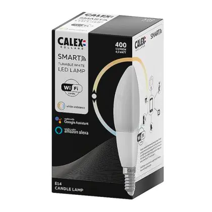 Je kunt ook meerdere Calex smart lampen koppelen aan onder meer een Google Home of Amazon Alexa apparaat. Hierdoor wordt het mogelijk om Calex verlichting met jouw eigen stemgeluid te bedienen. Door het geven van eenvoudige instructies als; ‘Hey Google, dim de lamp boven de tv’, heb je dit al binnen no-time geregeld! Tevens kun je deze kaarsvormige E14 Calex Smart verlichting bedienen via een officiële Calex Smart afstandsbediening. Deze Calex lamp werkt ook op een wandschakelaar, maar niet op een dimmerschakelaar. Hou daar rekening mee. Ben je op zoek naar Smart verlichting met een andere fitting of in een andere vorm? Klik dan hier om ons volledige assortiment te bekijken!