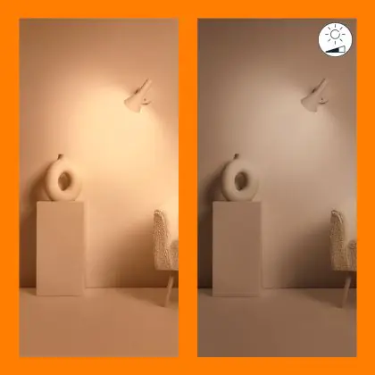 4. Dim to warm: Door te dimmen wordt het licht warmer (geler). Hoe meer je dimt, hoe warmer de kleur.