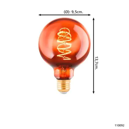 Beschrijving Eglo LED Globe E27 Filament Amber 4W 30lm - 820 Zeer Warm Wit | Dimbaar - Vervangt 15W
