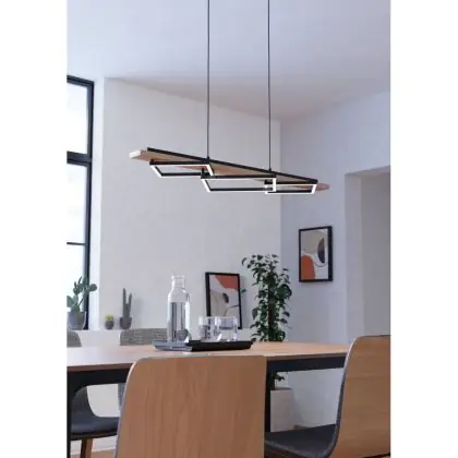 Eglo Pendelarmatuur Boyal Hout Zwart, Bruin 42W 3500lm - 830 Warm Wit | Dimbaar