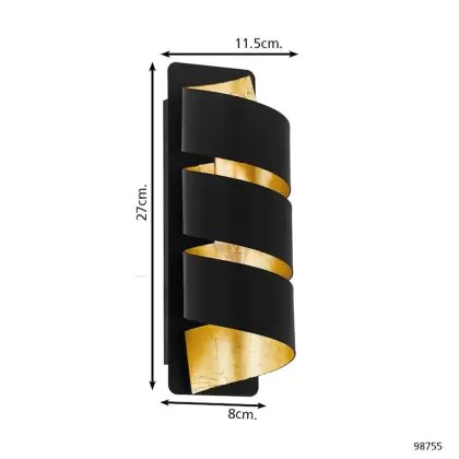 Beschrijving Eglo Wandlamp Elizondo Zwart, Goud | Geschikt voor E14