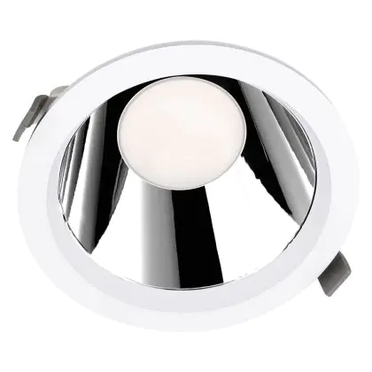 LED downlights kun je vergelijken met een inbouwspot, maar dan met een, over het algemeen, bredere stralingshoek. Downlight armaturen hebben een medium gradenbundel (25 - 40°), die perfect is voor ondersteunende verlichting, of een (zeer) brede gradenbundel (41 - >91°), die gebruikt wordt voor algemene verlichting. Deze 55° LED downlight van kun je in vele werkomgevingen en/of woningen gebruiken.