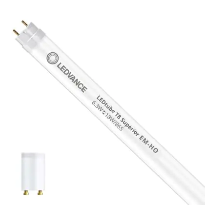 Beschrijving Ledvance LED Buis T8 Superior (EM/Mains) High Output 6.3W 1100lm - 865 Daglicht | 60cm - Vervangt 18W
