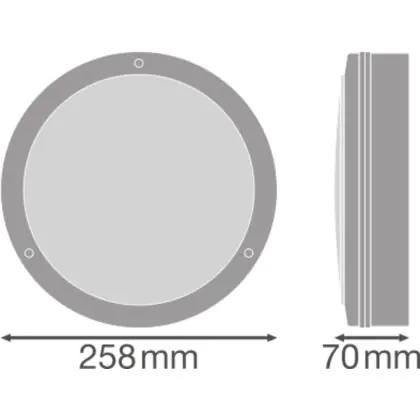 Beschrijving Ledvance LED Bulkhead Surface 250 Wit 10W 800lm - 830 Warm Wit | 250mm - IP65 - Bewegings- en lichtsensor - 3 uur Noodverlichting