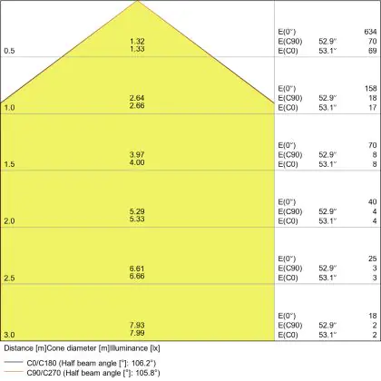 De gradenbundel geeft informatie over hoe breed het licht wordt uitgestraald. Dit zit tussen de 0 en 360 graden (D). Hoe kleiner de hoek, hoe specifieker de lichtbundel is. Over het algemeen is een smalle gradenbundel perfect voor sfeer- of accentverlichting, terwijl een brede gradenbundel ideaal is om grote oppervlaktes te verlichten.