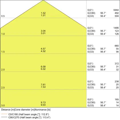 De lichtopbrengst (Lumen), geeft weer hoe krachtig het uitgestraalde licht is. Dit is belangrijk om te weten om de juiste sfeer te creëren. 0 tot 400 Lumen is bij uitstek geschikt voor accent- of sfeerverlichting. Een hoger aantal Lumen is, afhankelijk van de grootte van de ruimte, beter geschikt als ondersteunende- of basisverlichting. Heb je plafonds hoger dan 4 meter, dan is een lichtopbrengst van minimaal 8000lm aan te raden indien heldere verliching gewenst is (vb. in werkomgevingen).