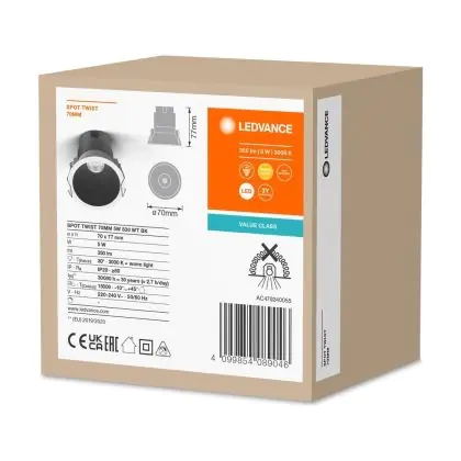 | Fabrikantnaam | LED SPOT RECESS TWIST PRO 70mm 5W 3000K White Black | |