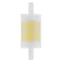 Deze R7s LED lamp is de efficiënte en energiezuinige LED-vervanger van R7s halogeenlampen. Wat opvalt aan deze buisvormige LED verlichting is de lampvoet aan beide uiteinden. Hiermee klik je de lamp vast in een geschikt armatuur. R7s LED staaflampen beschikken over een brede stralingshoek (gradenbundel), waardoor het licht meerdere kanten op schijnt. Dat is onder andere ideaal voor bouwplaatsen, sportvelden of (hoge) wand- en plafondarmaturen. R7s LED lampen met een extra warm witte kleurtemperatuur (2700K) kom je ook tegen in design armaturen voor woonkamers en slaapkamers. De kleurtemperatuur van deze LED lamp is: 2700K - Zeer Warm Wit.