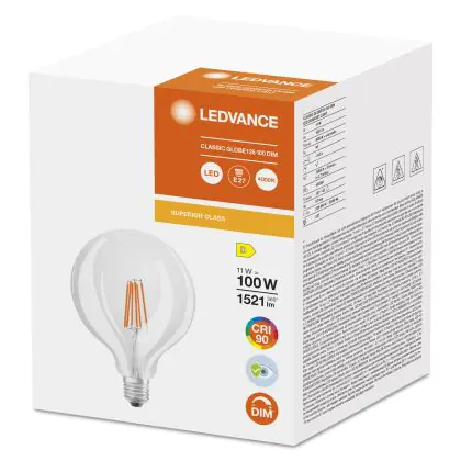 Beschrijving Ledvance Superior Classic LED E27 Globe Filament Helder 11W 1521lm - 940 Koel Wit | Beste Kleurweergave