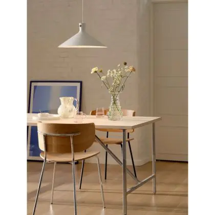 De kleur van het armatuur kan een grote rol spelen in het interieur van een ruimte. Zo kun je kiezen voor een neutraal wit design of juist voor een donkere kleur, zoals zwart of zilver, om de lichtbron op te laten vallen of er zelfs een decoratie op zich van te maken.