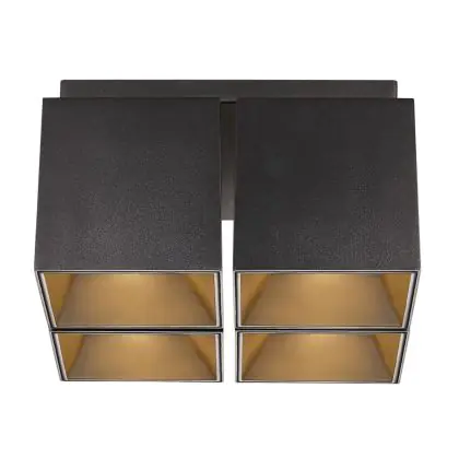 Met de Nordlux Ethan spot creëer jij eenvoudig een aangenaam licht met de bijgeleverde sets van zwarte en gouden reflectoren. Het mat zwarte aluminium armatuur kan worden voorzien van vier GU10 LED lampen of halogeenlampen, met een maximaal wattage van 50W per spot. Zijn deze GU10's dimbaar, dan kun je deze instellen met je dimmerschakelaar.