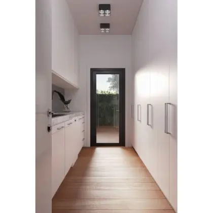 Je bevestigd deze opbouwspot eenvoudig tegen het plafond met behulp van de montagebeugel en bevestigingsschroeven. Handig meegenomen, is de extra kabelinvoer (twee tegenoverliggende zijden) en de mogelijkheid om onderling te koppelen met interne of externe bedrading.