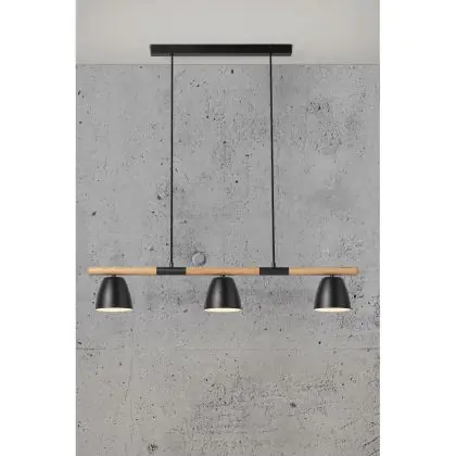 Beschrijving Nordlux Theo 3-Rail Pendelarmatuur Metaal en Hout Zwart | Geschikt voor 3x GU10