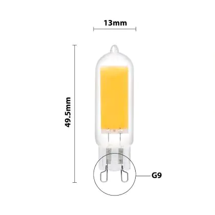 Om tot de meest geschikte G9 LED steeklamp te komen, is het handig om een aantal dingen te checken. Te beginnen met de kleurtemperatuur. Die is bij dit product: 3000K - Warm Wit. Wil je liever een andere kleurtemperatuur? Gebruik dan het filter 'Lichtkleur' aan de linkerkant van onze G9 LED Lampen pagina. Ook raden we aan om altijd de afmetingen van dit LED product te vergelijken met je huidige G9 lamp. De diameter is: 16mm en de hoogte is: 49.5mm.