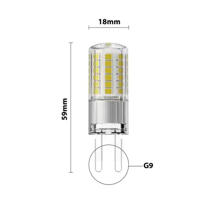 Om tot de meest geschikte G9 LED steeklamp te komen, is het handig om een aantal dingen te checken. Te beginnen met de kleurtemperatuur. Die is bij dit product: 2700K - Zeer Warm Wit. Wil je liever een andere kleurtemperatuur? Gebruik dan het filter 'Lichtkleur' aan de linkerkant van onze G9 LED Lampen pagina. Ook raden we aan om altijd de afmetingen van dit LED product te vergelijken met je huidige G9 lamp. De diameter is: mm en de hoogte is: 59mm.