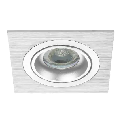 De plafondplaat van deze spot is erg dun, wat een mooie afwerking geeft na installatie. De aluminium behuizing in zilveren kleur geeft een strakke look, maar deze spot is ook in andere designs en kleuren verkrijgbaar. De spot is vierkant van vorm en heeft een smalle, strakke rand en hoeken om de lichtbron te accentueren. De lichtbron wordt diep in het design geplaatst.