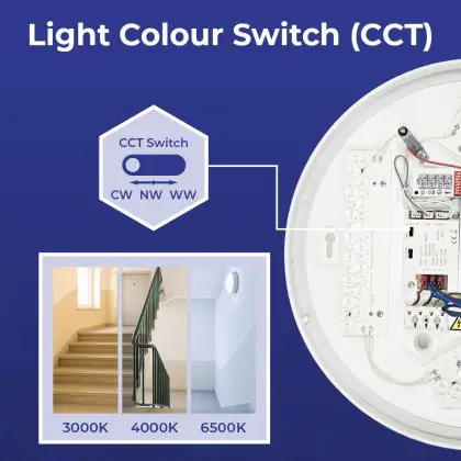2. CCT: Je kiest uit 2 of 3 vaste kleuren via een schakelaar, zoals warm wit of koel wit.
