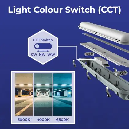 Denk ook goed na over het kiezen van de juiste kleurtemperatuur. Deze LED montagebalk heeft als kleurtemperatuur: 3000K - 4000K - 6500K CCT. Voor ruimtes waar weinig tot geen natuurlijk daglicht aanwezig is, raden wij de kleurtemperatuur 6500 Kelvin (daglicht wit) aan. Vooral voor dieren in een stal is dit een prettige lichtkleur. 4000 Kelvin (koel wit) is qua tint ook nog steeds fris en natuurlijk van aard en past daarom ook in vele (werk)situaties, zoals in een magazijn, bouwmarkt of fabriekshal. 3000 Kelvin (warm wit) is qua licht wat zachter van aard en past daarom vooral in ruimtes zoals een hal, gang, trappenhuis of galerij.