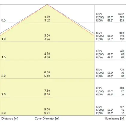 De gradenbundel geeft informatie over hoe breed het licht wordt uitgestraald. Dit zit tussen de 0 en 360 graden (D). Hoe kleiner de hoek, hoe specifieker de lichtbundel is. Over het algemeen is een smalle gradenbundel perfect voor sfeer- of accentverlichting, terwijl een brede gradenbundel ideaal is om grote oppervlaktes te verlichten.