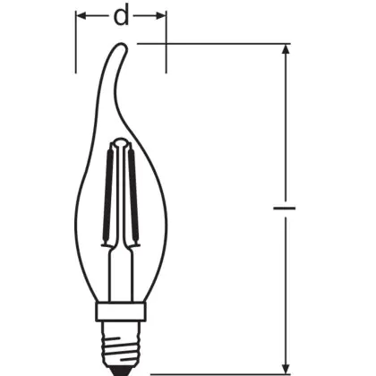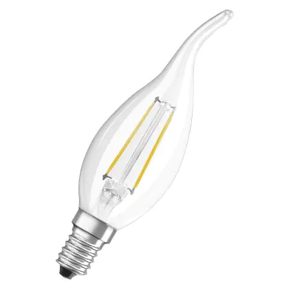 Beschrijving Osram Classic LED E14 Gebogen-tip candle Filament Helder 2.5W 250lm - 827 Zeer Warm Wit | Vervangt 25W