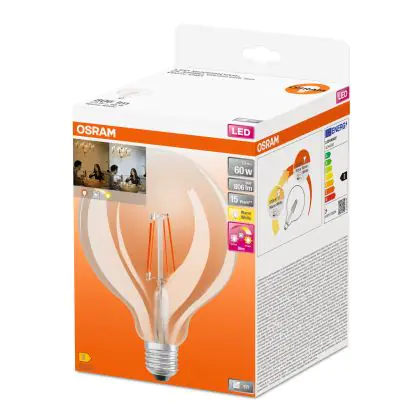 Beschrijving Osram SuperStar LED E27 Globe 125mm Filament Helder 7W 806lm - 822-827 Dim to Warm | Dimbaar - Vervangt 60W