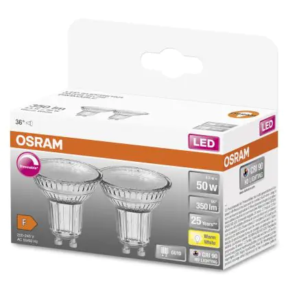 Beschrijving Osram Superstar LED GU10 Spot 4.5W 350lm - 927 Zeer Warm Wit | Dimbaar - Beste Kleurweergave - Set van 2 - Vervangt 50W