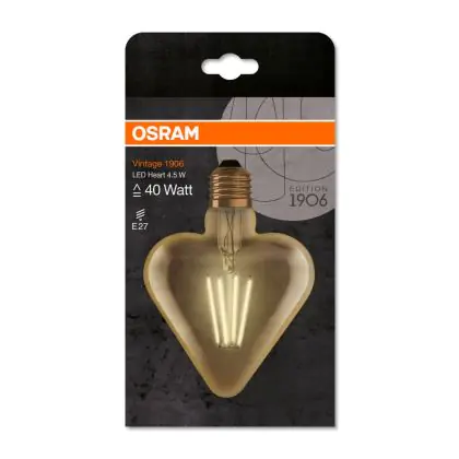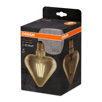 Beschrijving Osram Vintage 1906 LED E27 Heart Filament Goud 4.5W 470lm - 825 Zeer Warm Wit | Vervangt 40W