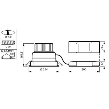 De installatie van deze Philips LuxSpace downlight is erg eenvoudig. Zo is de driver al ingebouwd. Verder maakt de doorvoerconnector het aansluiten in elk systeemplafond een fluitje van een cent. Check voor het installeren wel of de inbouwdiepte (119mm) en de zaagmaat (200mm) overeenkomen met de maten van deze downlight. De twee sterke rvs-klemmen zorgen ervoor dat dit Philips armatuur stevig op zijn plek blijft zitten. Je kunt deze downlight rechtstreeks aansluiten op de netstroom (220-240 Volt).