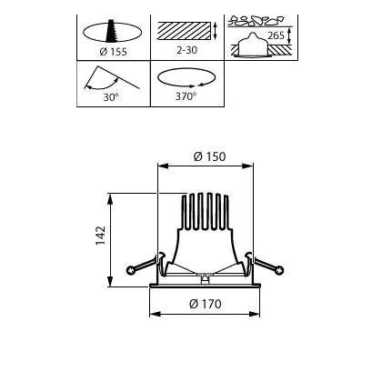 Goed om te weten is dat deze LED inbouwspot een zaagmaat heeft van 150mm en een diameter van 170mm. Dit wil zeggen dat het gat in het systeemplafond of het verlaagde plafond een afmeting dient te hebben van 150mm om het armatuur stevig in het plafond te bevestigen. De spot zelf is voorzien van twee handige klemmetjes, die uitzetten zodra het armatuur in de gat is geplaatst. Zo geregeld dus! Vanaf het moment van aanschaf ontvang je 5 jaar all-in garantie. Hierdoor ben je verzekerd dat de inbouwspot ook doet wat die hoort te doen: zonder problemen een ruimte verlichten!