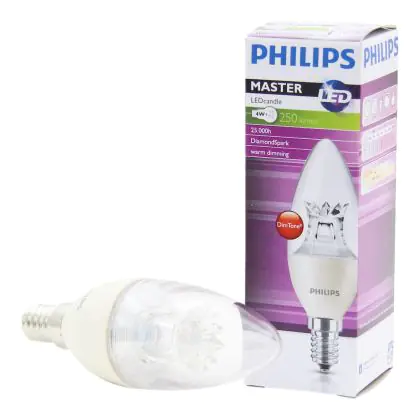 In ons assortiment E14 LED lampen valt er genoeg te kiezen. Vooral qua kleurtemperatuur (Kelvin) en vorm. Deze lamp heeft de volgende kleurtemperatuur: 2200K - 2700K Dim to Warm. Hoe lager de kleurtemperatuur, hoe warmer het licht. Wil je ergens sfeer toevoegen? Kies dan voor een E14 LED lamp van 1800 tot 2700 Kelvin. Hoge kleurtemperaturen zoals 4000 en 6500 Kelvin zijn op hun beurt beter geschikt als functionele verlichting. De vorm van dit product is: Kaars. Op zoek naar een ander type E14 LED lamp? Gebruik dan het zoekfilter 'vorm' aan de linkerkant van deze pagina. Ook handig om te weten is de lichtopbrengst van deze lamp. Die is 250 lumen.