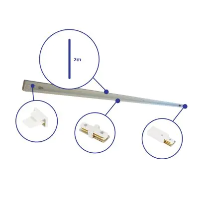 Beschrijving Rail Set 1-Fase 2 Meter Wit | incl. Eindkap, Voedingsconnector en I-Verbindingsstuk