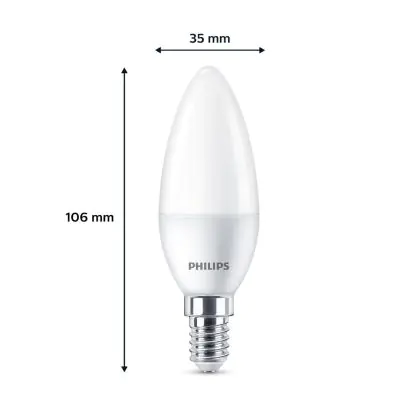 | Fabrikantnaam | Box 6 stuks - Philips LED Kaarslamp Mat - 40 W - E14 - Warmwit licht | |